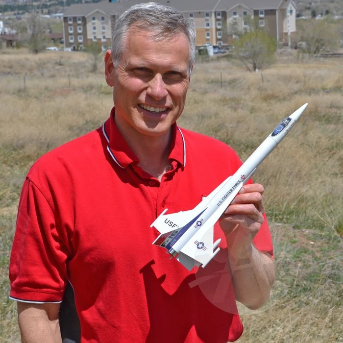 This is an updated version of the old Centuri F-16 rocket kit. The rocket features balsa fins, plastic nose cone, and a clear vacuum form canopy.