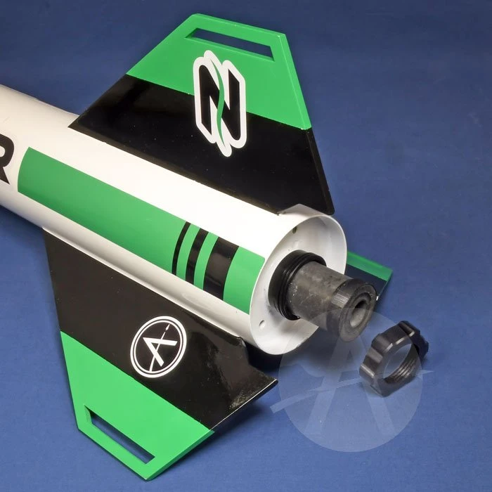 This is the LOC version of the screw-on retainer. Use it to safely restrain your 38mm rocket motors from moving either forward or rearward in the rocket.
