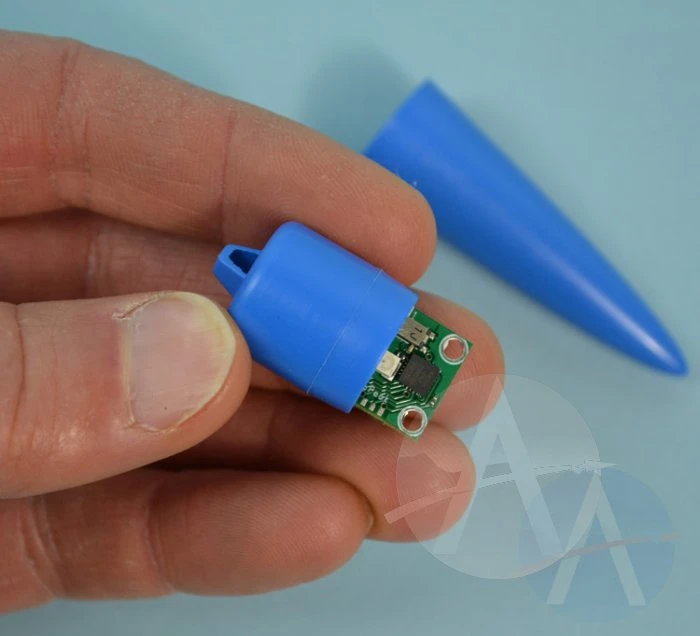 This tiny data-logging altimeter was designed specifically for the modelers that compete in international rocketry competitions (FAI). It easily fits into the “coupler” for an 18mm tube and weighs a mere 2 grams (with included battery). It records 48 seconds of flight data that can be analyzed after recovery. It is the smallest production altimeter in America.
