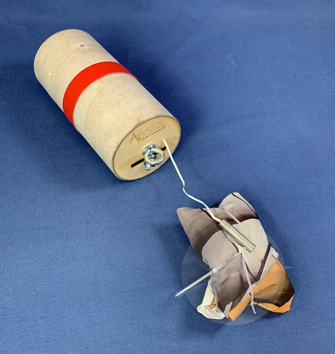 The Stainless Steel Piranha Cable Cutter is used to delay the opening of your main parachute, so it acts as a streamer initially, and delays the time at which the parachute opens. This prevents the rocket from drifting as far because the main parachute opens at a lower altitude.