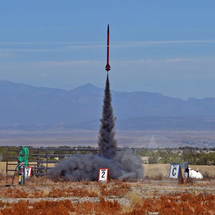 An all fiberglass rocket that is super durable and can take any punishment you want to give it. Uses 38mm motors, so it is a nice model after you’ve got your High Power certification. The Darkstar Jr can be flown on high-thrust G motors as well as H, I and J motors, so it’s a very flexible rocket.